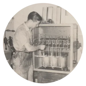 El origen modesto de la empresa se remonta a los esfuerzos pioneros de Pascual Lombardi, quien comenzó su actividad en el bobinado de motores en el garaje de su casa. Con el tiempo, su experiencia se expandió hacia la producción de estabilizadores y, finalmente, transformadores. La demanda de transformadores personalizados llevó a la creación de modelos especiales bajo pedido. La segunda generación de la familia, Norberto y Mabel, se incorporó a la empresa, continuando la tradición familiar y fortaleciendo aún más su legado.